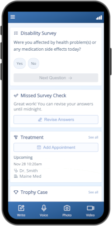 - Streaks and trophies reward consistency with completing surveys and scheduling and attending provider appointments.