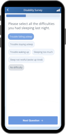 Concise questionnaires capture client struggles & impairments over time in just a few minutes a day.