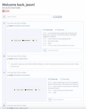 - Every entry is automatically timestamped, transcribed, summarized by AI, and stored securely.