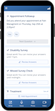 - Clients are the real experts on how their injuries impact their lives — empower them to tell their stories through short surveys and text, photo, audio & video journals.